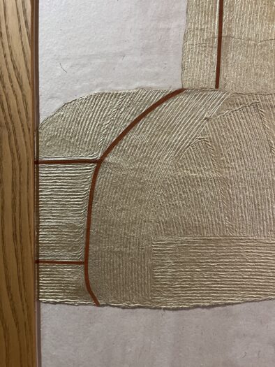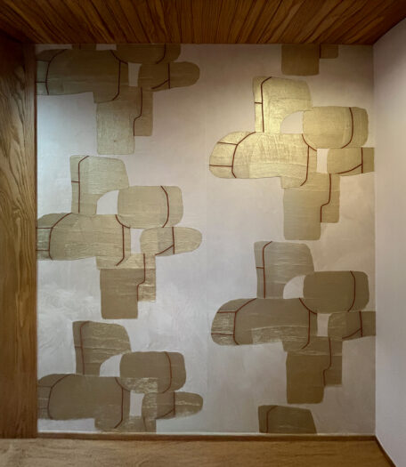 フランスのÉlitis(エリティス)壁紙「Takara RM 1062 04」は、光の角度でゴールドがきらめく繊細なデザイン。和紙のようなベースと立体的なゴールドの質感が融合し、まるでアート作品のような表情を見せます。