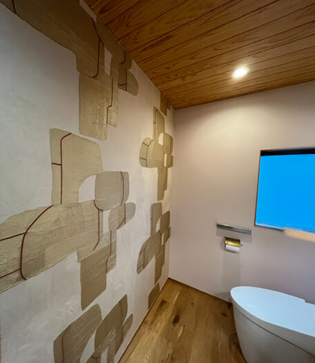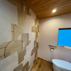施工の難しさをご理解いただき、材料支給で施工をお任せいただきました。「日本で初めての壁紙施工かも」とMUROの技術を信じてご依頼くださいました。 一面貼り替えるだけで、空間全体がぐっと上質に。施工の難易度が高い壁紙も、職人の手で美しく仕上げています。大胆でありながら落ち着いた色合いは、フランスの高級壁紙ならでは。日常の中に、ちょっとした非日常を取り入れる感覚を楽しめます。